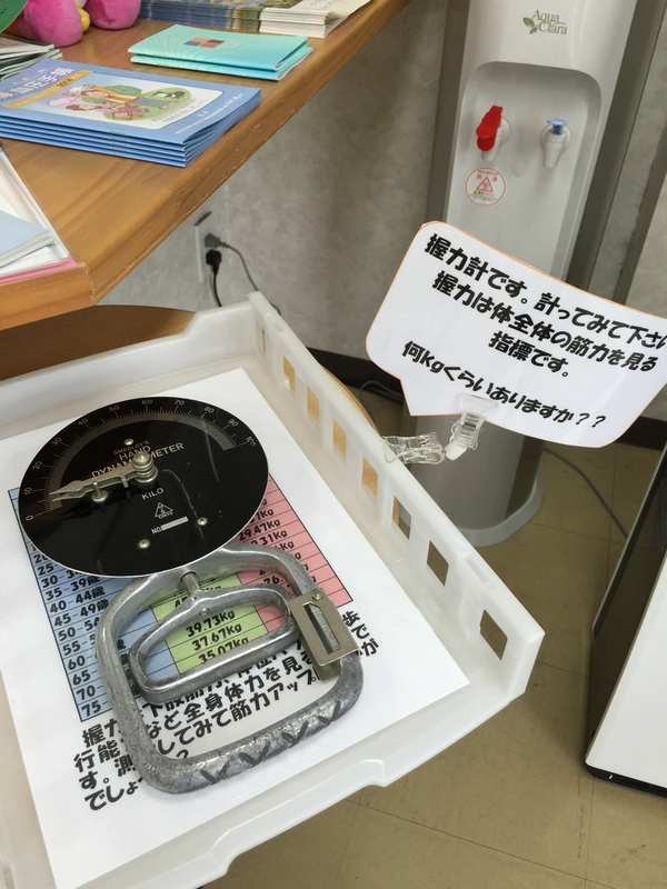 薬局待合室に握力計をおきました。患者さんも待ち時間に測定しています。 …