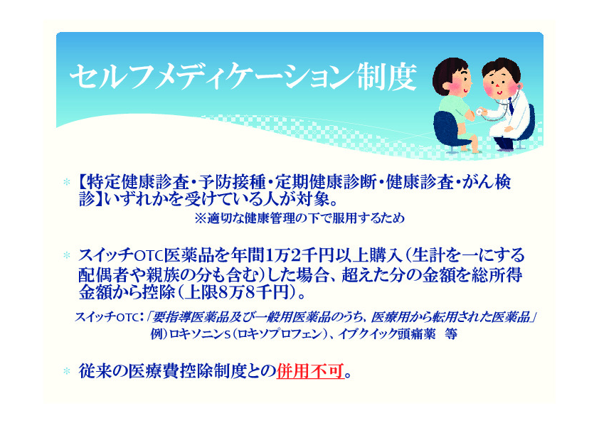 テーマは『セルフメディケーション減税』!! これからは自分の健康管理を …