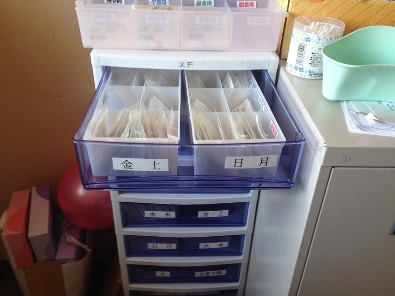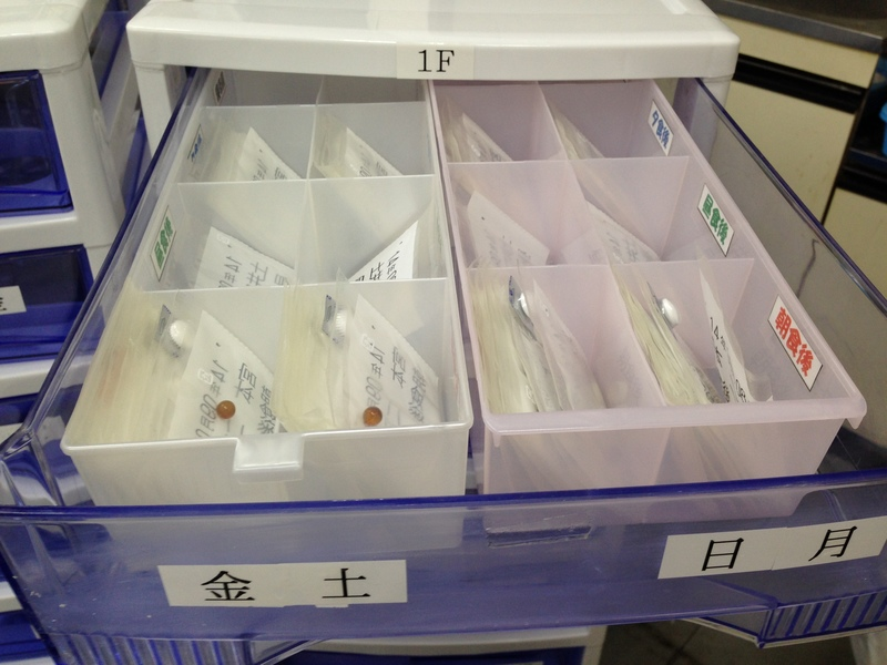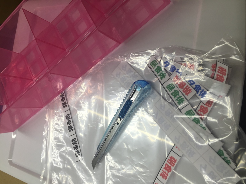 配薬ボックス作成 2015.12.1 By いずみ薬局2015年12月5日上 12月より70名の新規施設と担当することになりました。お薬セット用の配薬ボックスを70人分作成しました。100円均一とAO用品で作ります。切ったり貼ったりでまるで図工の様でした。