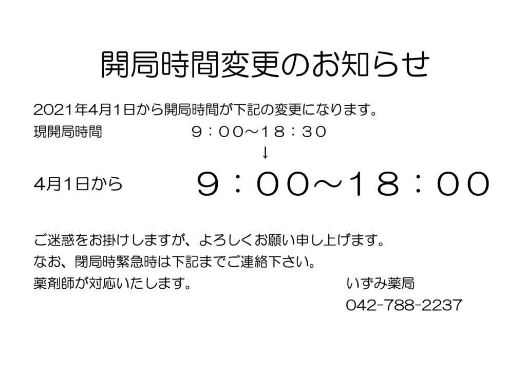 いずみ薬局からのお知らせ