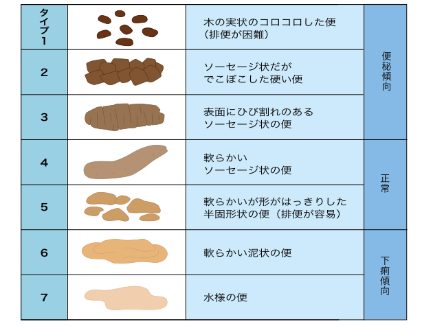 現在、便の硬さを診るスケールがあります。通常4が良い硬さと言われています。
