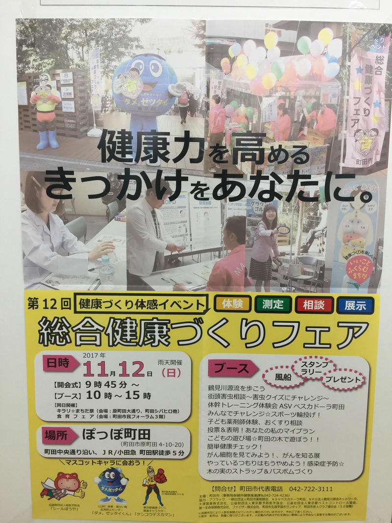 2017年11/12(日) 『総合健康づくりフェア』のお知らせ By いずみ薬局2017年10月19日上 町田市主催のイベントのお知らせです。 いずみ薬局の薬剤師も『こども薬剤師体験』、『おくすり相談』に参加してきます。 ご興味のある方は是非 足を運んでみてください!!