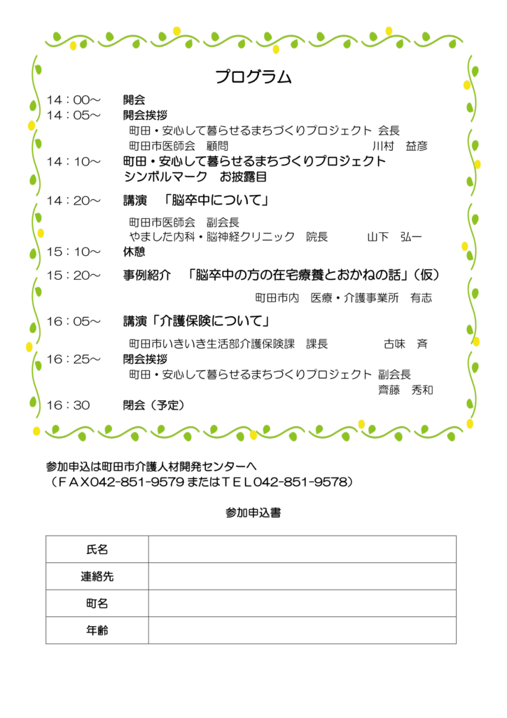 申込締切:12月1日17時迄 申込み先:町田市介護人材開発センター TEL 042-851-9578 FAX 042-851-9579