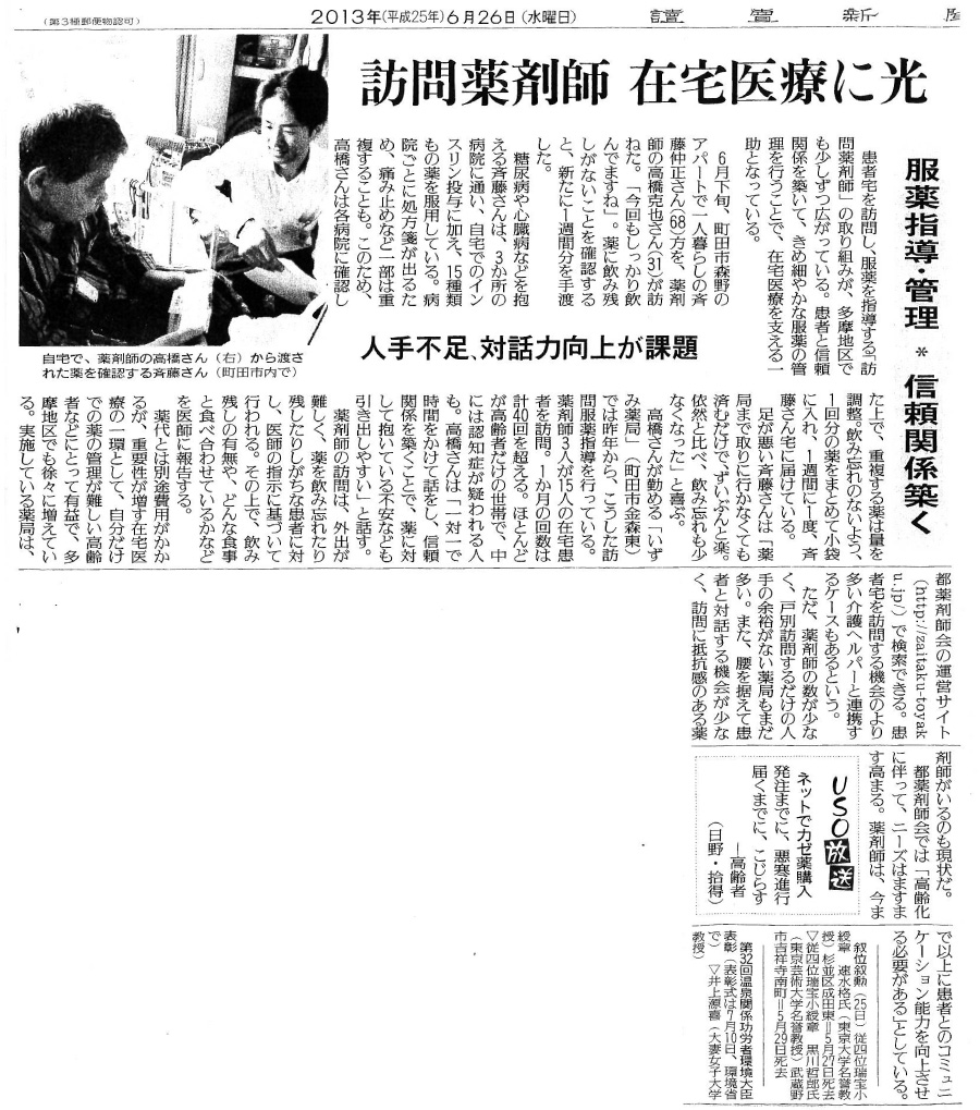 地域薬剤師会、市などと協力して『市民公開講座の薬の話』、『薬剤師対象の在宅講習会講師』、『学校薬剤師』などをしています。