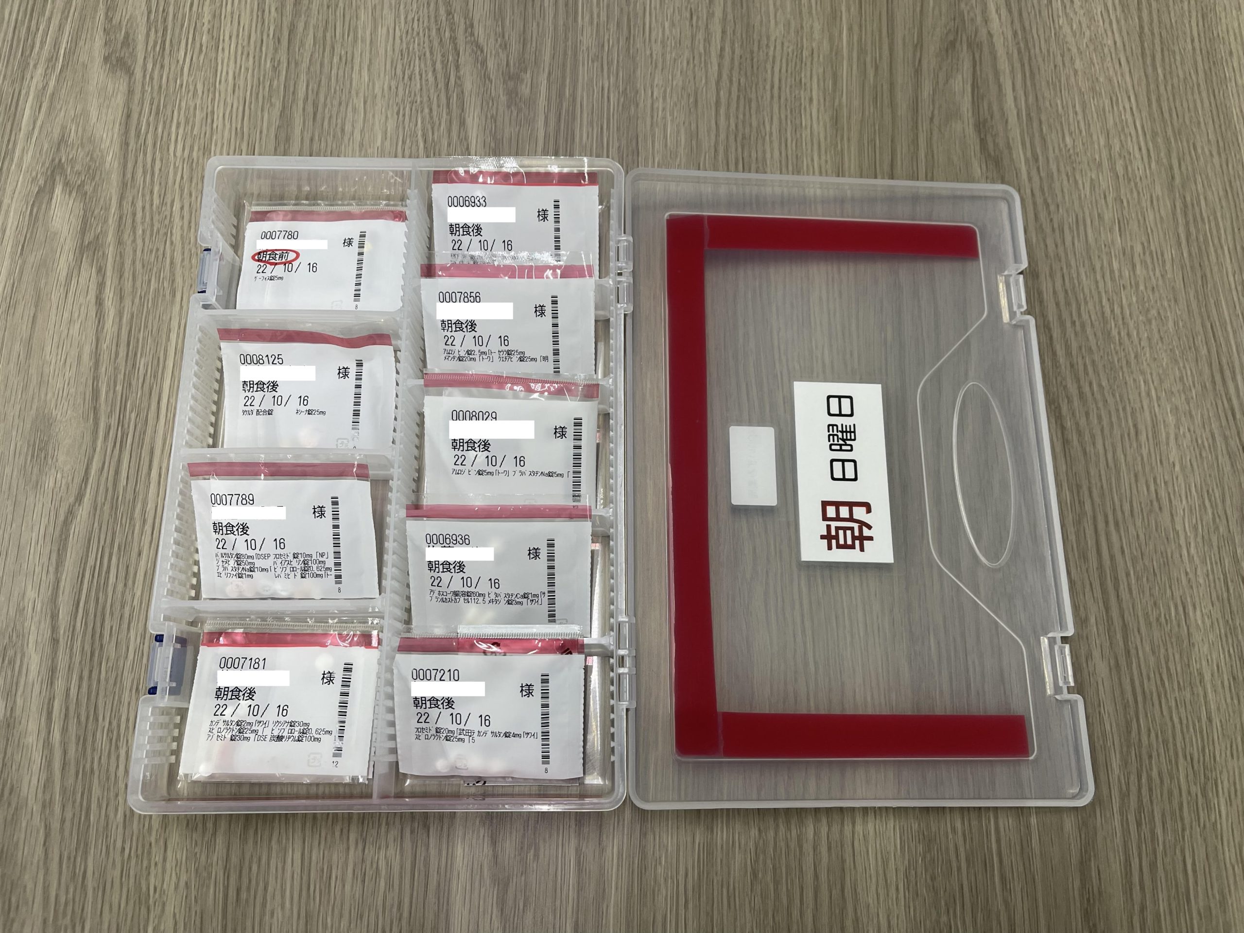 ご本人、家族、介助者が服薬しやすい様に援助する事を心がけています。薬剤師の訪問のみでの服薬の見守りには限界があるのでやはりご本人の意識やキーパーソンの援助が欠かせません。ご自分の薬がしっかり飲める!あるいは服薬介助がしやすい!のお手伝いを意識しています。